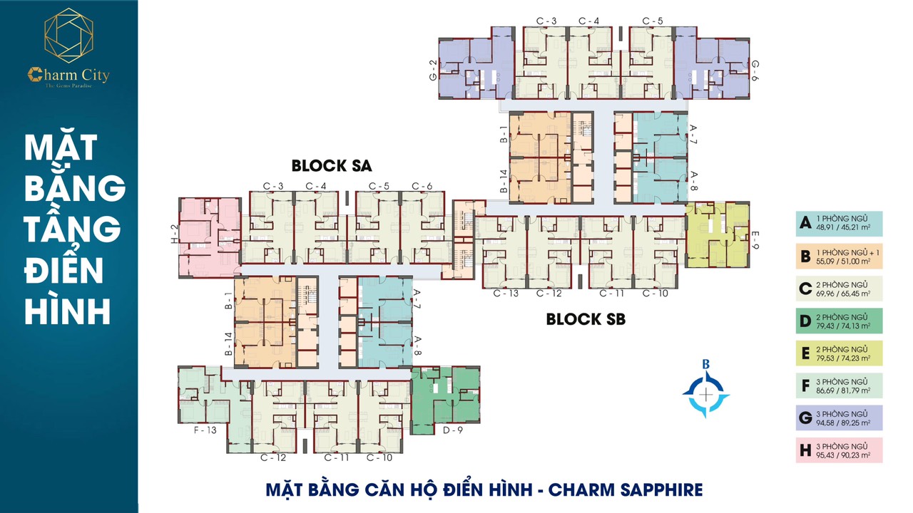 Mặt bằng thiết kế dự án căn hộ Charm City Dĩ An Bình Dương block Sapphire